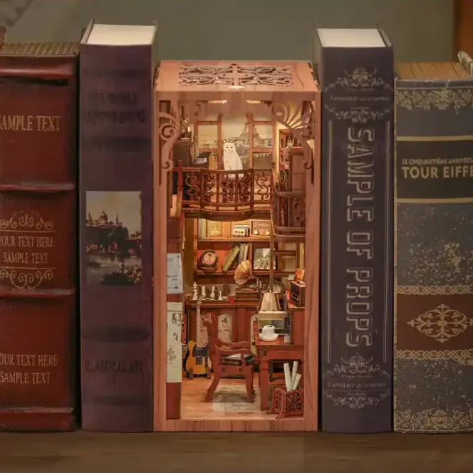 Diseñado en cada detalle - Cada parte del Book Nook The Secret Rhythm está hecha con una excepcional atención al detalle. Ya sean los interruptores táctiles, las luces, los muebles o los elementos musicales que decoran el diorama, cada elemento está cuidadosamente diseñado para ofrecer una experiencia inmersiva en la música.